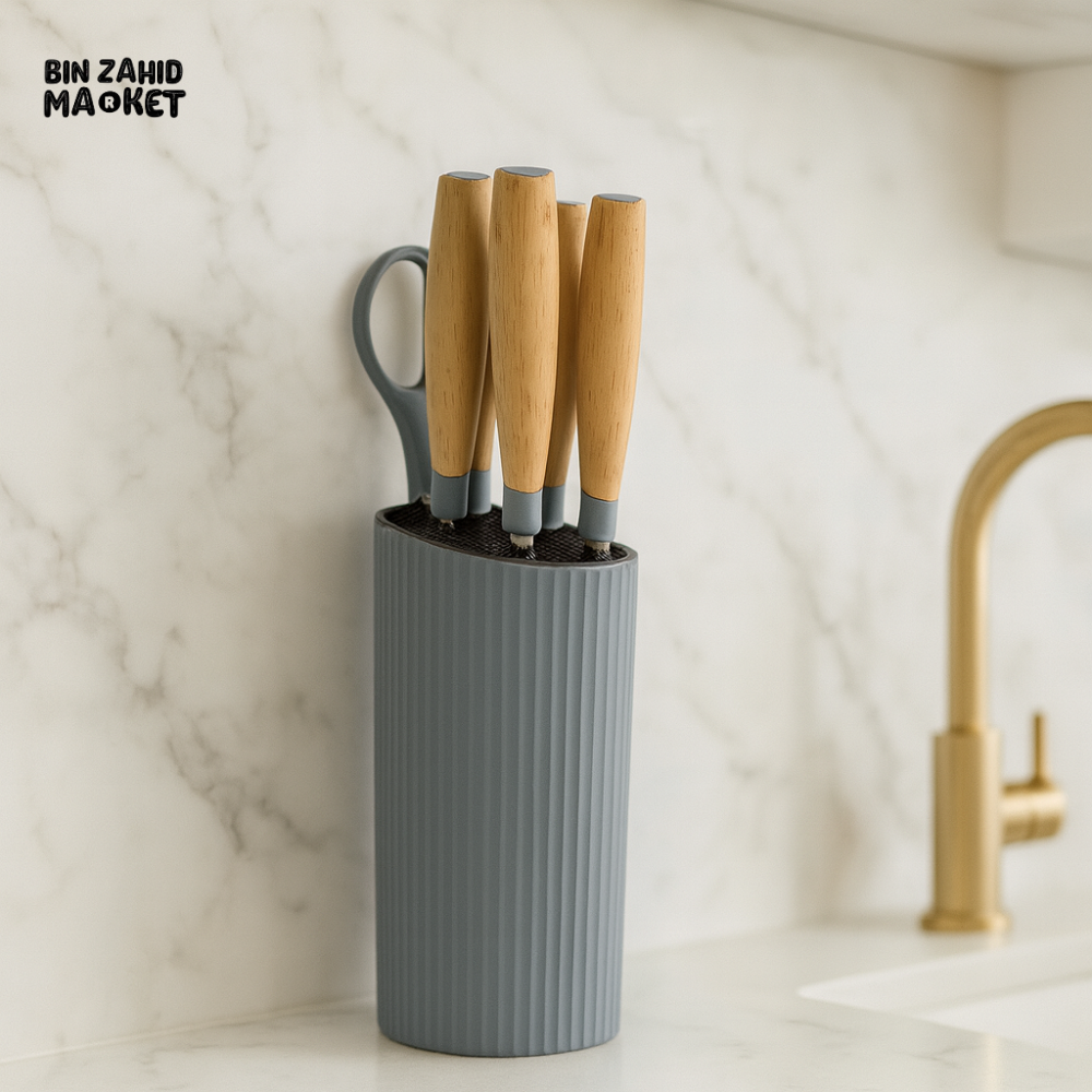 This 7-piece stainless steel knife set combines durability and precision with ergonomic wooden handles designed for comfort and control. Each knife is crafted for sharpness and longevity, making food preparation efficient and enjoyable. The included stand provides organized, safe storage while keeping your kitchen neat and knives within easy reach. Ideal for both professional chefs and home cooks seeking reliable cutting tools.