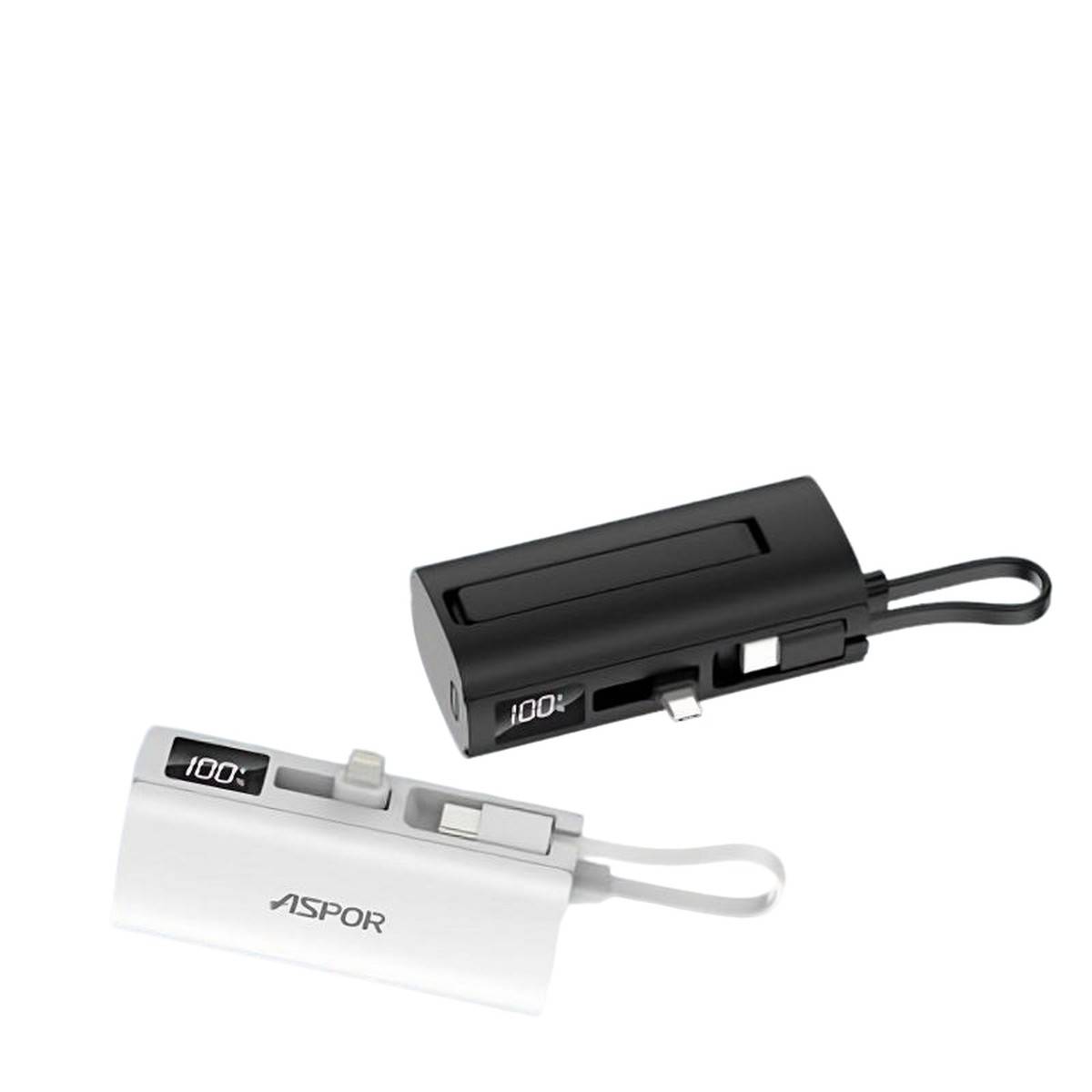 Introducing the Aspor A351 2 IN 1 IPHONE & TYPE-C Flexible Portable Mini 5000 mAh Power Bank. This power-packed gadget is perfect for those on the go, offering reliable and fast charging in a compact design.