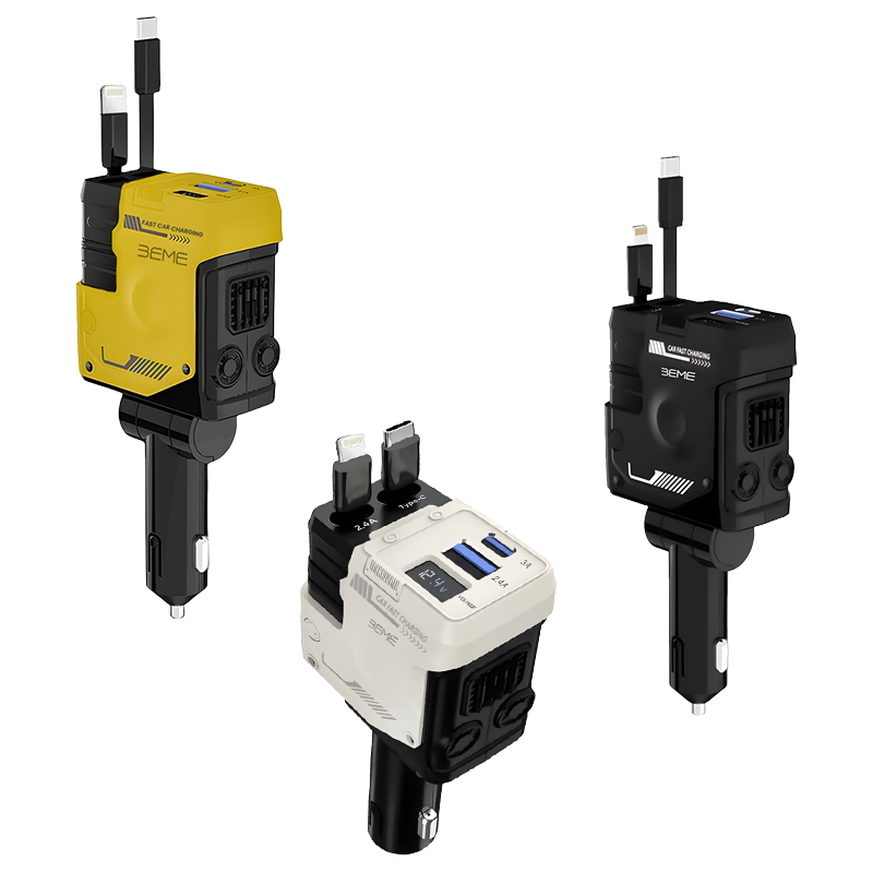 Stay powered up wherever the road takes you with the BEME 66W Dual PD Car Charger. Designed for ultimate convenience and performance, this charger features built-in retractable cables and dual PD fast-charging ports to power multiple devices at once — including smartphones, tablets, and even laptops.