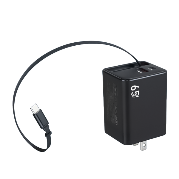 Retractable Type-C Cable Built-In – Comes with a retractable 65W Type-C cable, perfectly designed for on-the-go charging without cable mess or tangles.