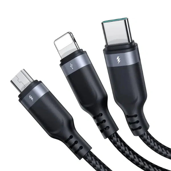 Simplify your charging experience with the JOYROOM S-1T3018A18 3-in-1 Data Cable. Designed for versatility, this cable features Lightning, Type-C, and Micro-USB connectors, making it the perfect all-in-one solution for charging and syncing multiple devices.