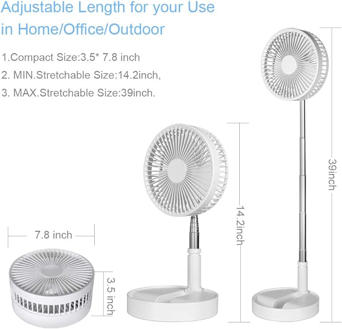 Compact and Foldable Design: Take this fan anywhere with its lightweight, foldable design. It's easy to store and transport, making it perfect for travel, camping, and outdoor activities.