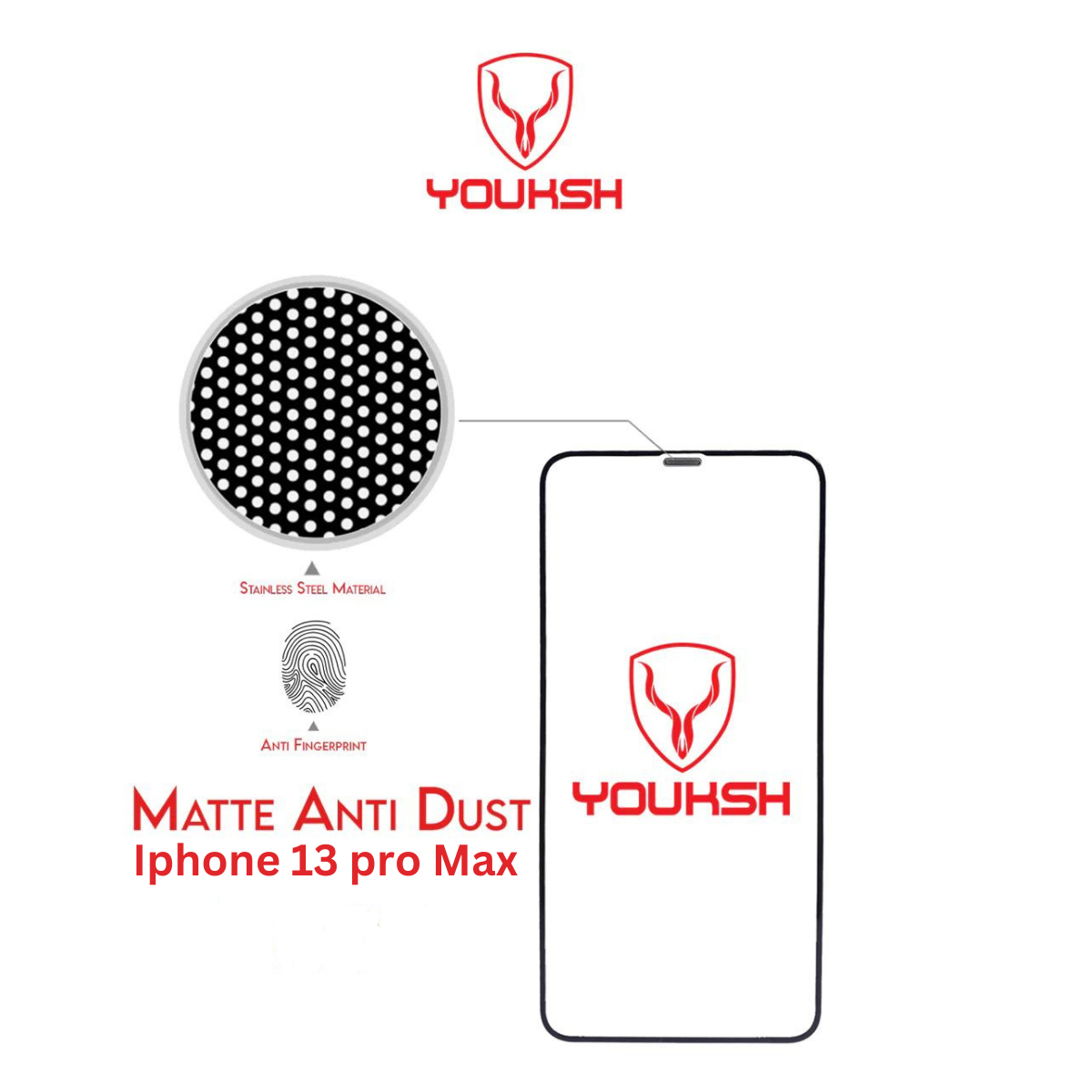 Secure your iPhone 13 Pro Max with the YOUKSH anti-static matte glass protector. Enjoy maximum protection from scratches and drops with this ultra-durable and shock-absorbing glass, designed specifically for this device.